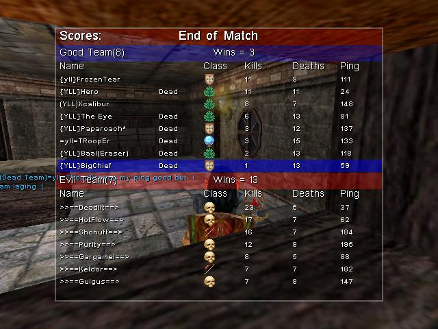 April 2003 (-(FoC)-) – Forces of Chaos vs >^EA^< – Evil Angels >>== ==> – The Flying Arrows vs {DbD} – Dead by Dawn (>>== ==> – The Flying Arrows vs {YLL} – Young Light Lords [TNT] The Nasty Terminators vs (*wia*) – Warriors in Action